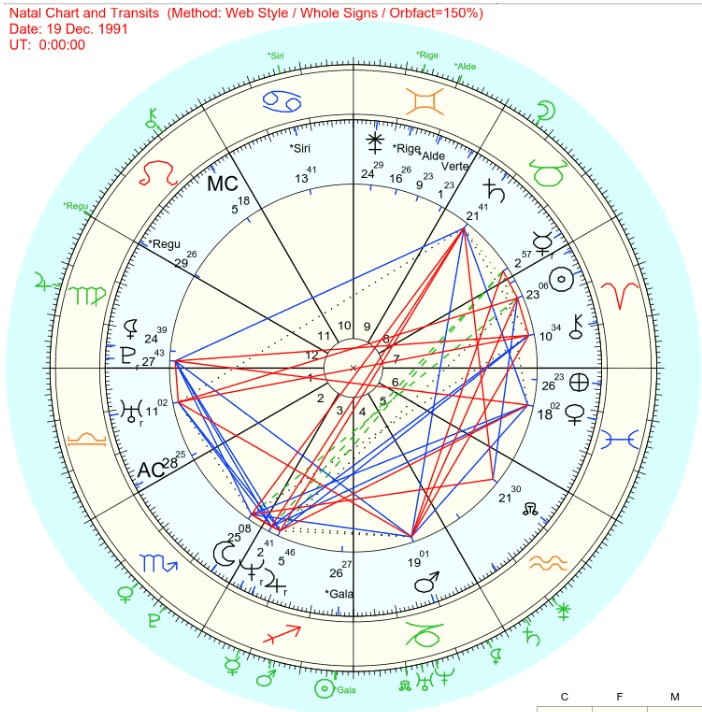 After the war in Ukraine broke out in February, 2022, Austin Coppock said some pretty interesting things about the astrology of the Soviet Union on the Astrology Podcast. I wanted to look up the chart for the dissolution of the USSR not only because I have a Ukrainian back-story, but also because my friend is Russian, and when she heard that I was taking a transits course, she wanted to test my new skills. She gave me some important dates in her life, but didn’t tell me what was happening on them. One of the dates was in mid-December, 1991, when the Soviet Union was almost officially broken up. My friend was in Crimea at the time, working at a factory and studying engineering when her teacher came up to her and told her they didn’t have any more money to support her studies. (The USSR paid students a monthly stipend based on their grades). My friend was deeply dissapointed to have to interrupt, and ultimately stop, her studies, and her teacher was trying to find ways to help her stay and earn money another way by suggesting she work in a nearby cafe, but her mother was prevailing upon her to come home. Her parents also worked in a factory in the city, and had also lost their jobs. They didn’t have a way to support her at school anymore, so my friend begrudgingly went home.