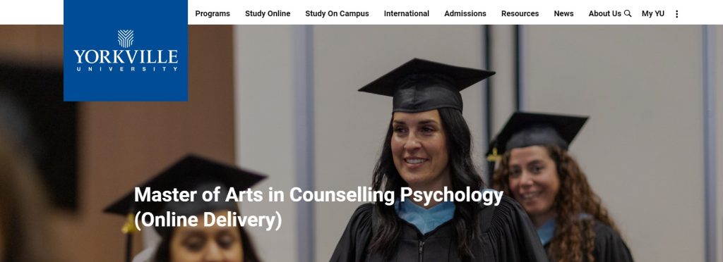 I wanted to see if I could cut out the cost of travelling or moving, so I looked for an online school in Canada that could qualify me for the title of Psychotherapist or Counsellor. The first hit that comes up in google is Yorkville, an online university that offers a Masters of Arts in Counselling Psychology for $43,610 as of their 2023 tuition rate. They say they are the first online counsellor education degree in Canada, and their Master of Arts in Counselling Psychology is “recognized by provincial and national associations and regulatory bodies, allowing our graduates to apply for registration/membership with the following associations:”